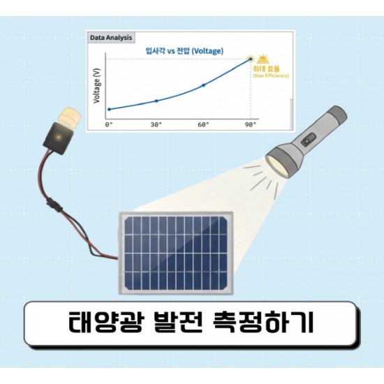 태양광 패널을 활용해 빛의 세기 변화에 따라 발전되는 전압량을 측정해 보는 실험 키트!