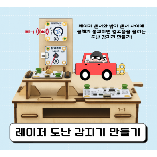 센서입력 - 조건판단 - 출력 반응이라는 자동화 흐름을 직접 체험하며, 보안 시스템의 작동 원리와 센서 활용 방법을 자연스럽게 학습할 수 있습니다.