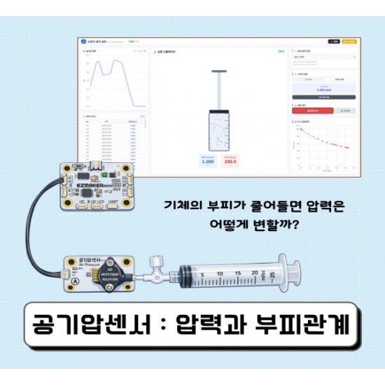 주사기와 공기압센서를 연결하여 부피 변화에 따른 압력 데이터를 수집할 수 있는 디지털 과학 실험 장치를 제작할 수 있습니다.